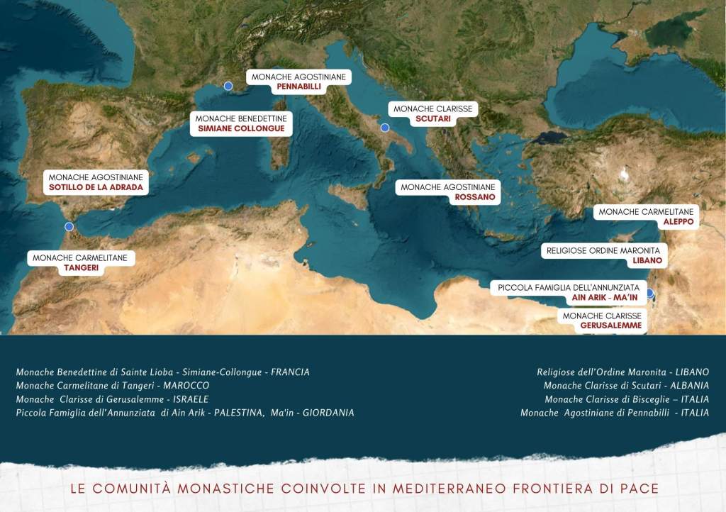 In occasione dell’incontro dei Vescovi e dei Sindaci del Mediterraneo “Mediterraneo Frontiera di Pace 2” – Firenze 23-27 Febbraio 2022, 10 monasteri del Mediterraneo si sono messi in rete per pregare e riflettere insieme sul tema della cittadinanza a partire dalla vita e dall’esperienza delle comunità monastiche e nel confronto con i diversi contesti a cui appartengono i monasteri. Ne è nato un quaderno, curato dalle in cui sono racchiuse le riflessioni.
